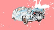 イラストデータ「旧車イラスト 青いバンBG Pink」